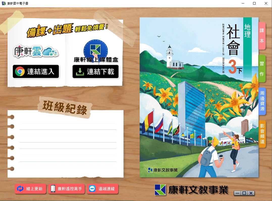 111學年下學期 國中 康軒版 地理電子書 3年級(含課本、習作含解答、教學資源)教學光碟